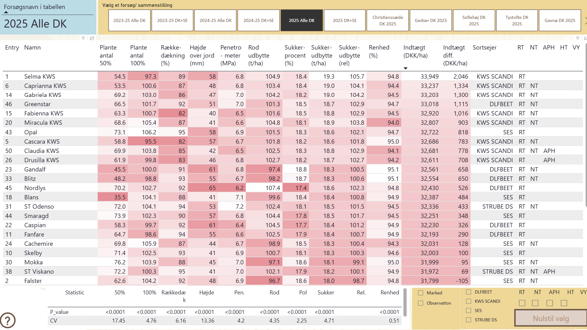 Hvis du vil se nærmere på NBR’s sorts resultater kan du via dette link anvende NBR’s program til sorter. Her kan du se resultater for de enkelte forsøg, samlet eller hver for sig, og kan se hvordan sorterne er i forhold til hinanden.